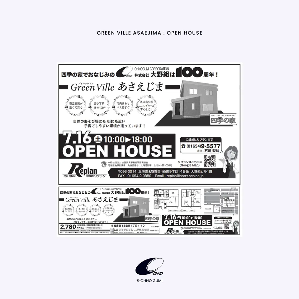7月16日(土)10時00分〜18時00分まで「名寄市西13条南4丁目1-10」にてオープンハウスを開催いたします。皆様のご来場をお待ちしております。