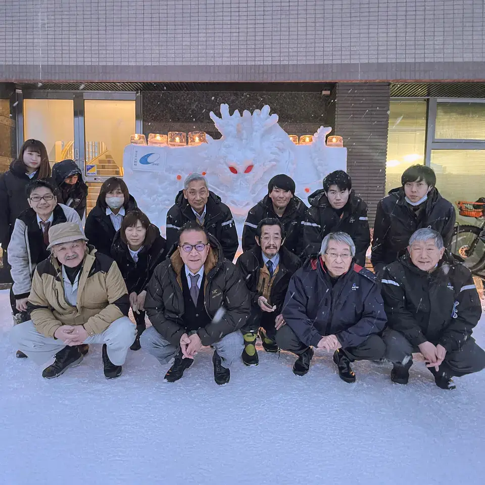 大野組では名寄の冬の祭「雪質日本一フェスティバル」開催に合わせ、毎年会社前に雪像を制作しています。今年は辰年と言うことで、ドラゴンボールの神龍(シェンロン)を制作してみました。
