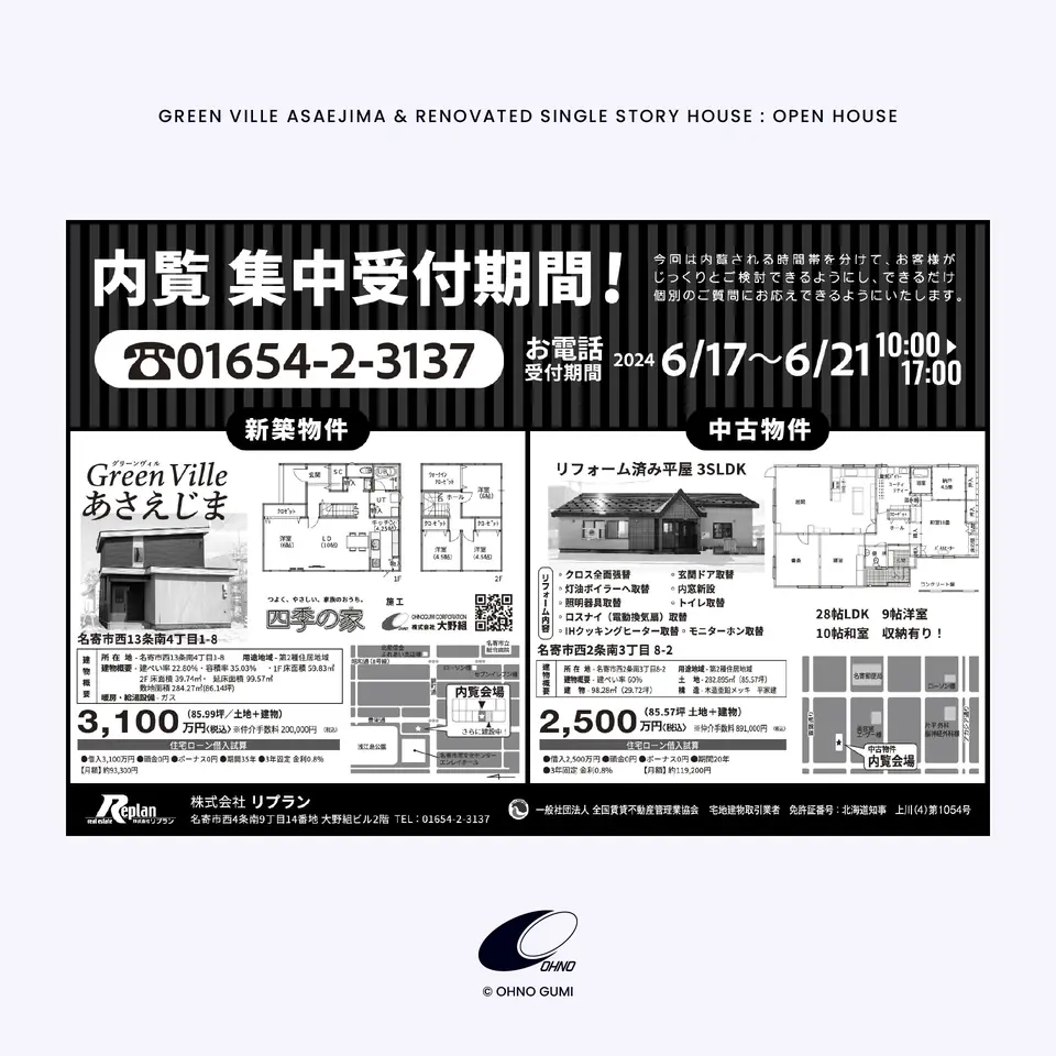 内覧のご予約は「6月17日(月)〜21日(金)|株式会社REPLAN(リプラン)」までご連絡ください。