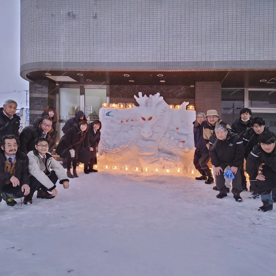 大野組では名寄の冬の祭「雪質日本一フェスティバル」開催に合わせ、毎年会社前に雪像を制作しています。今年は辰年と言うことで、ドラゴンボールの神龍(シェンロン)を制作してみました。