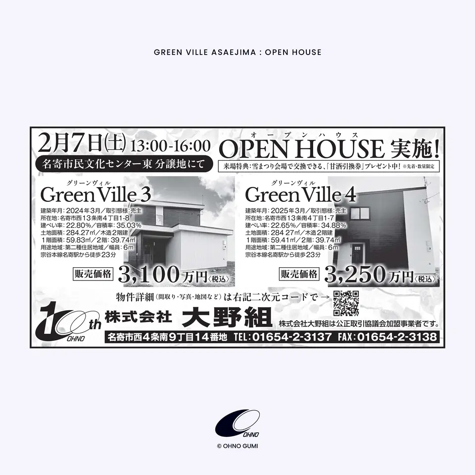 2026年最初のオープンハウスを2月7日(土)13時00分〜16時00分まで開催いたします!