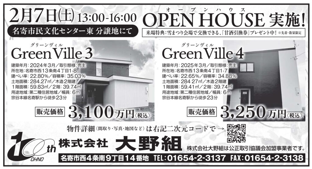 2026年最初のオープンハウスを2月7日(土)13:00〜16:00まで開催いたします!